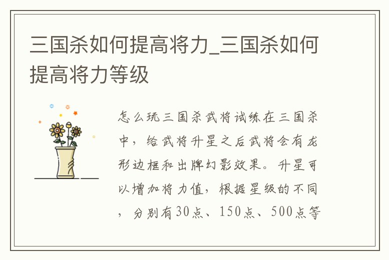 三國殺增加星數可以增加將力,一星可以增加100將力,五星可以增加500將力。