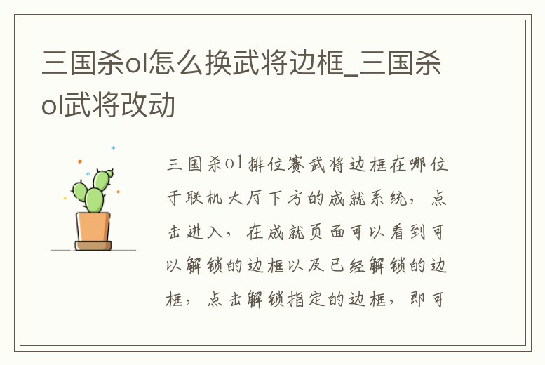 三國殺ol怎么換武將邊框_三國殺ol武將改動