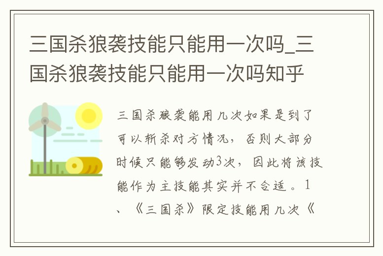 三國殺狼襲技能只能用一次嗎_三國殺狼襲技能只能用一次嗎知乎