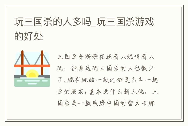 玩三國殺的人多嗎_玩三國殺游戲的好處