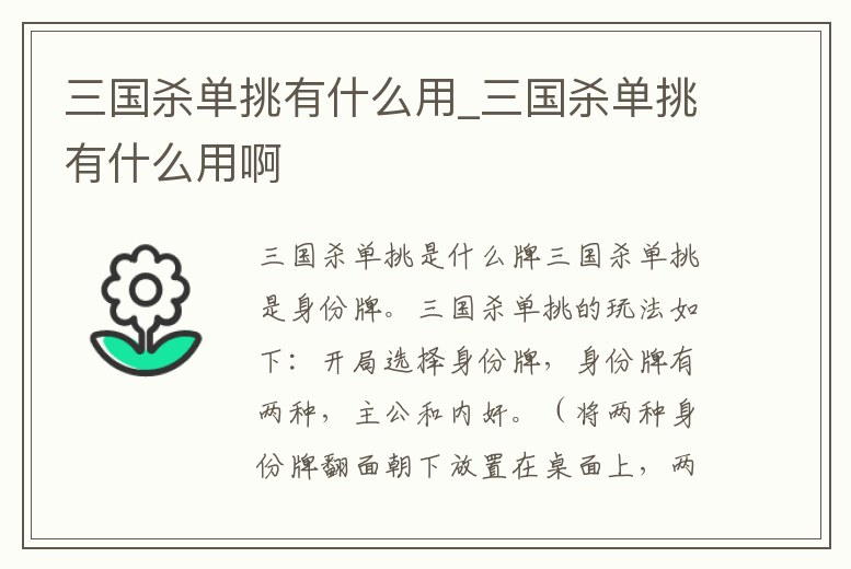 三國殺單挑有什么用_三國殺單挑有什么用啊