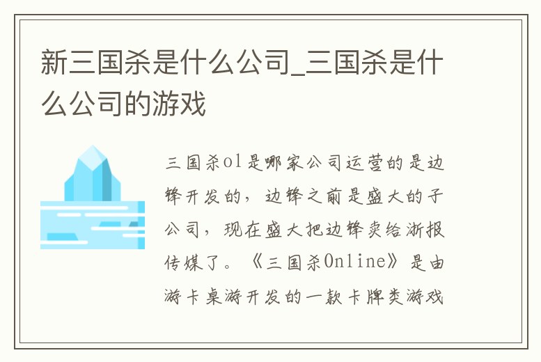 新三國殺是什么公司_三國殺是什么公司的游戲