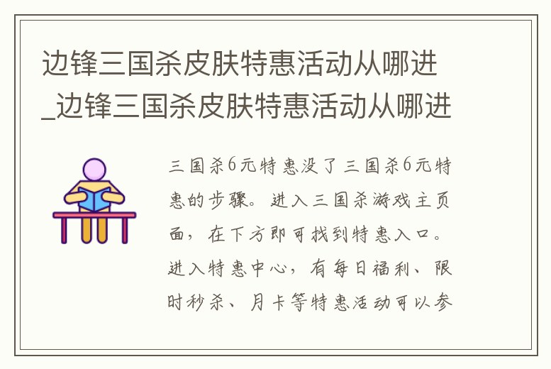 邊鋒三國殺皮膚特惠活動從哪進_邊鋒三國殺皮膚特惠活動從哪進入