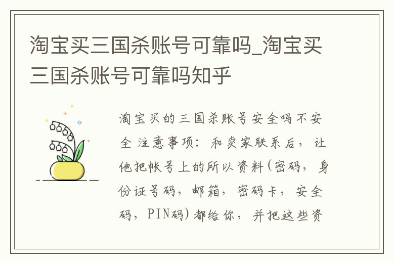 淘寶買三國殺賬號可靠嗎_淘寶買三國殺賬號可靠嗎知乎