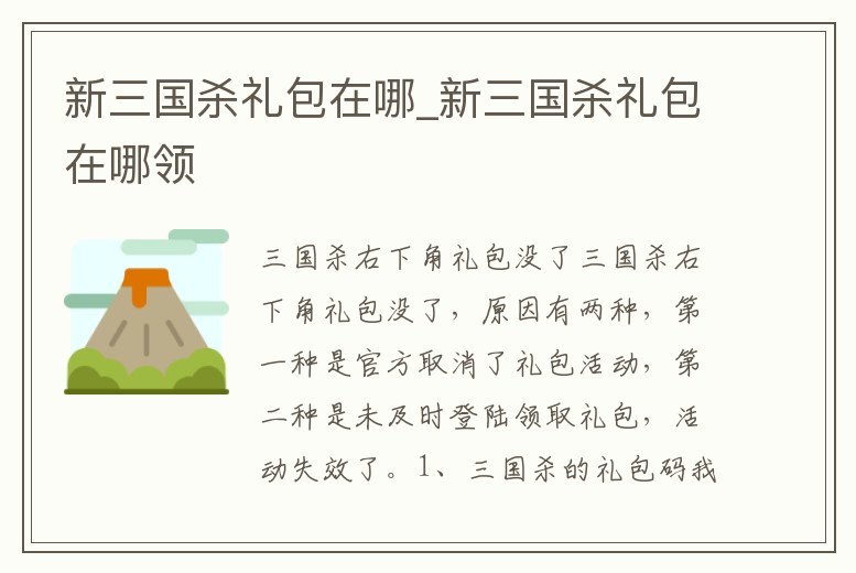 三國殺右下角禮包沒了,原因有兩種,第一種是官方取消了禮包活動,第二種是未及時登陸領取禮包,活動失效了。