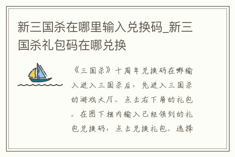 新三國殺在哪里輸入兌換碼_新三國殺禮包碼在哪兌換