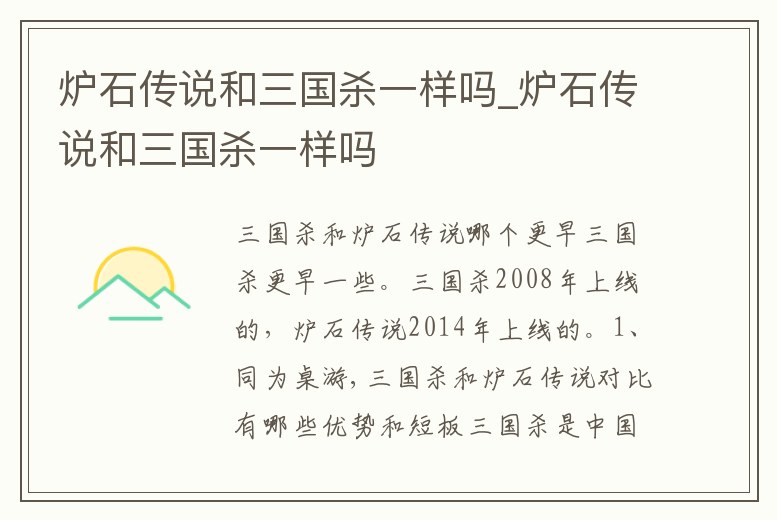 爐石傳說和三國殺一樣嗎_爐石傳說和三國殺一樣嗎