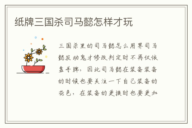 紙牌三國殺司馬懿怎樣才玩
