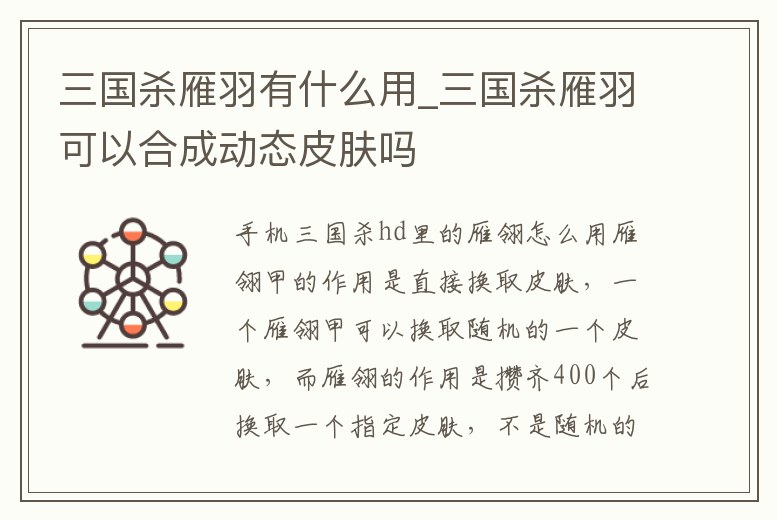 三國殺雁羽有什么用_三國殺雁羽可以合成動態皮膚嗎
