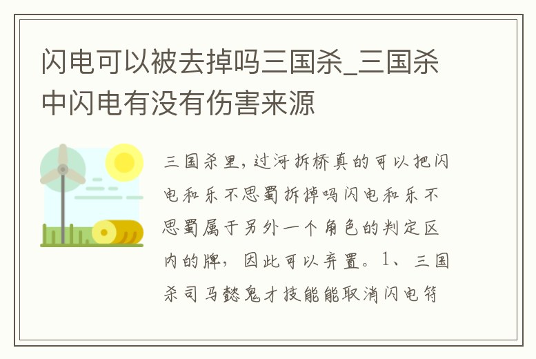 閃電可以被去掉嗎三國殺_三國殺中閃電有沒有傷害來源