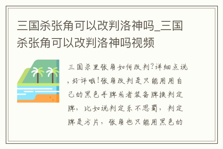 三國殺張角可以改判洛神嗎_三國殺張角可以改判洛神嗎視頻