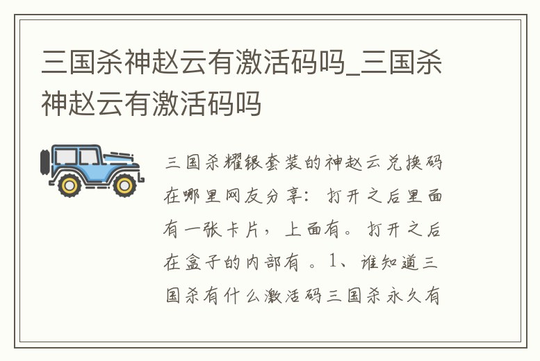 三國殺神趙云有激活碼嗎_三國殺神趙云有激活碼嗎