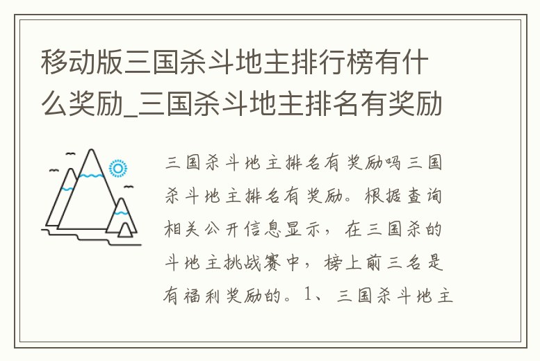 移動版三國殺斗地主排行榜有什么獎勵_三國殺斗地主排名有獎勵嗎