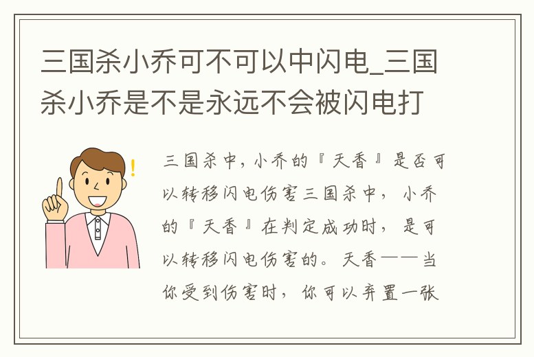 2、三國殺中,小喬的『天香』是否可以轉移閃電傷害