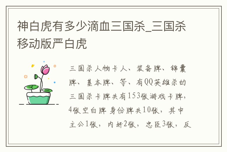 神白虎有多少滴血三國殺_三國殺移動版嚴白虎
