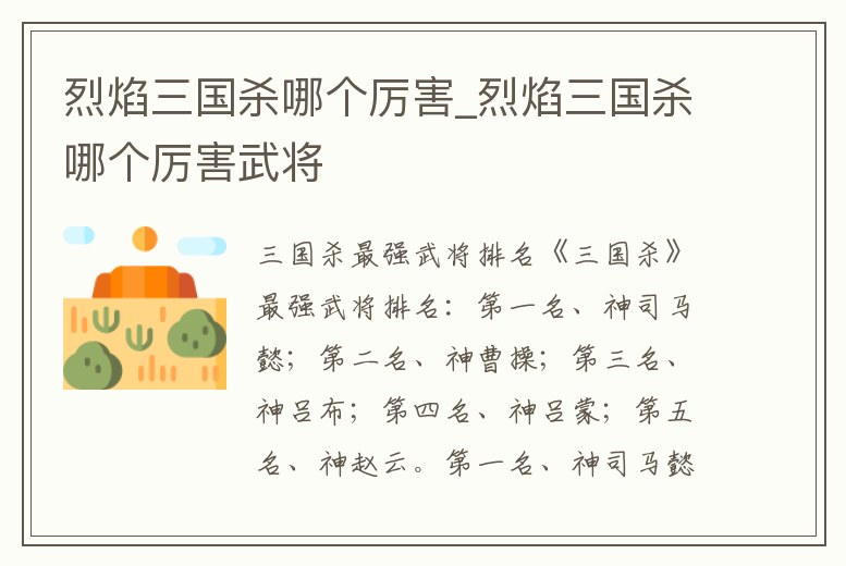 烈焰三國殺哪個厲害_烈焰三國殺哪個厲害武將