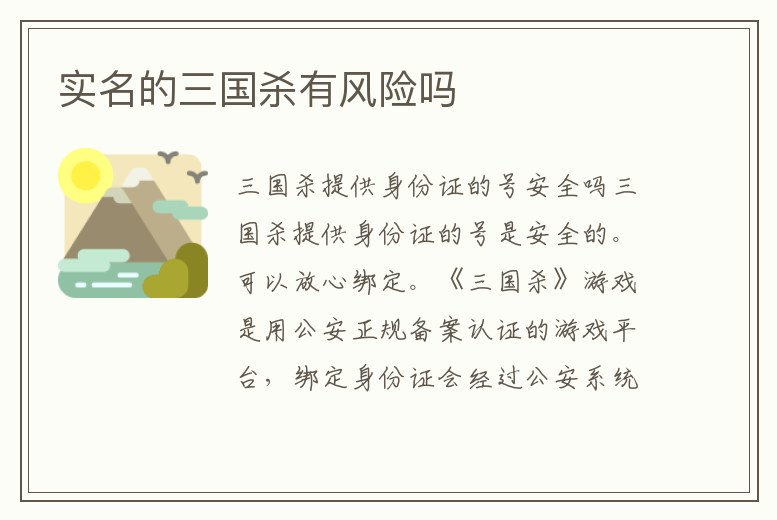 3、三國殺填寫真實身份沒有問題吧?不會有什么影響吧