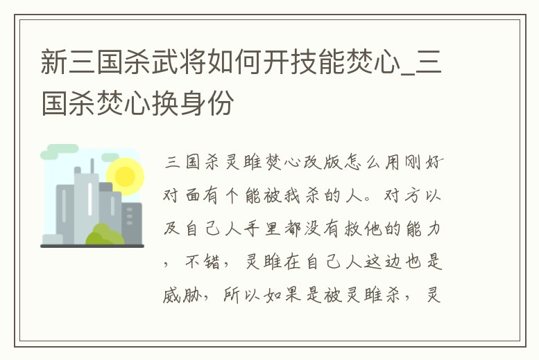 新三國殺武將如何開技能焚心_三國殺焚心換身份