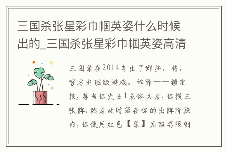 三國殺張星彩巾幗英姿什么時(shí)候出的_三國殺張星彩巾幗英姿高清