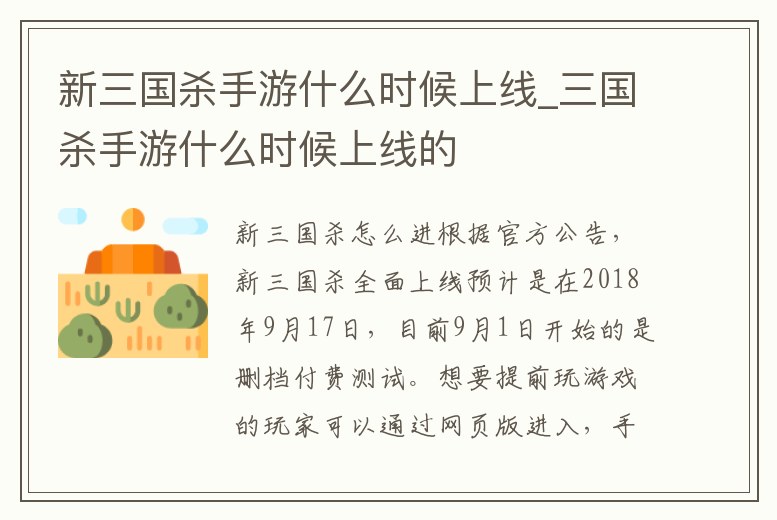 新三國殺手游什么時候上線_三國殺手游什么時候上線的