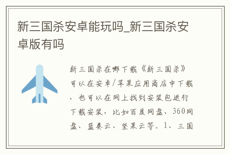 - 新三國(guó)殺安卓能玩嗎_新三國(guó)殺安卓版有嗎