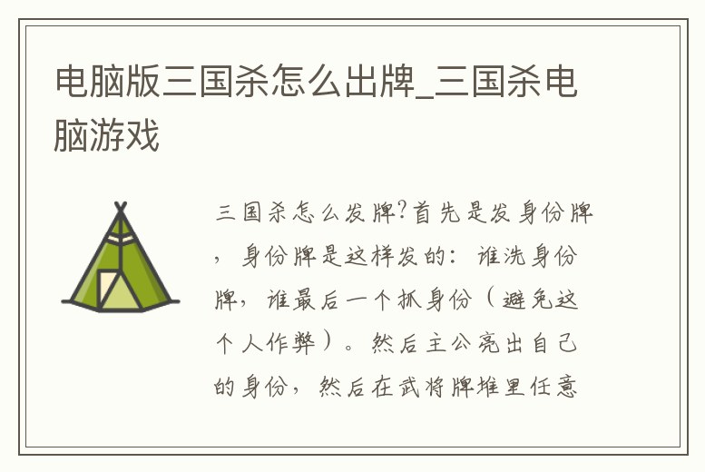 首先是發身份牌,身份牌是這樣發的:誰洗身份牌,誰最后一個抓身份(避免這個人作弊)。然后主公亮出自己的身份,然后在武將牌堆里任意抽出兩張(若這兩張里有曹操,劉備,孫權三者之一或者之二;則將曹操,劉備,孫權任意。