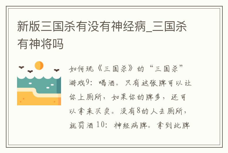 新版三國殺有沒有神經病_三國殺有神將嗎