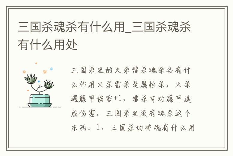 三國殺魂殺有什么用_三國殺魂殺有什么用處