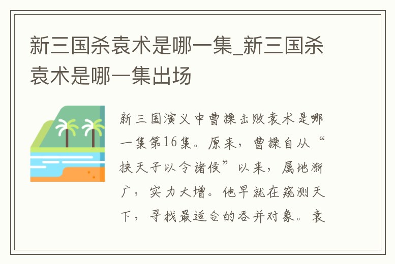 新三國殺袁術是哪一集_新三國殺袁術是哪一集出場
