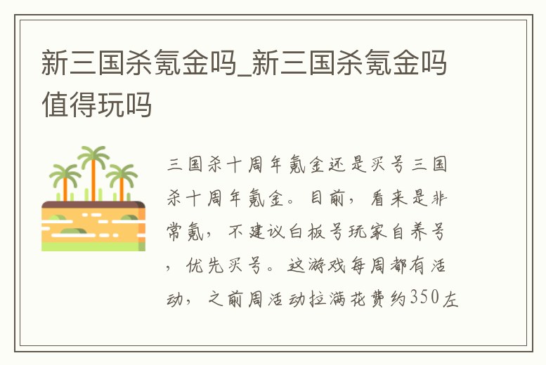 新三國殺氪金嗎_新三國殺氪金嗎值得玩嗎