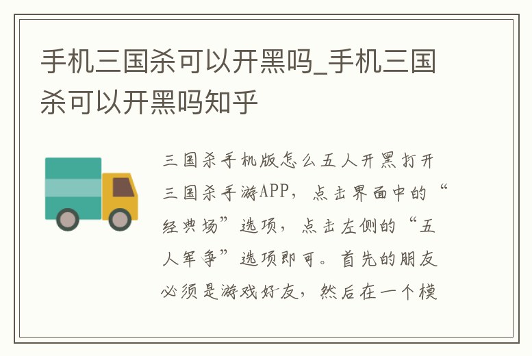 手機三國殺可以開黑嗎_手機三國殺可以開黑嗎知乎
