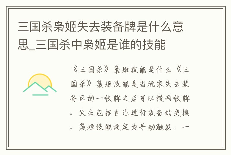 三國殺梟姬失去裝備牌是什么意思_三國殺中梟姬是誰的技能