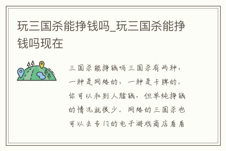 三國殺能掙錢嗎