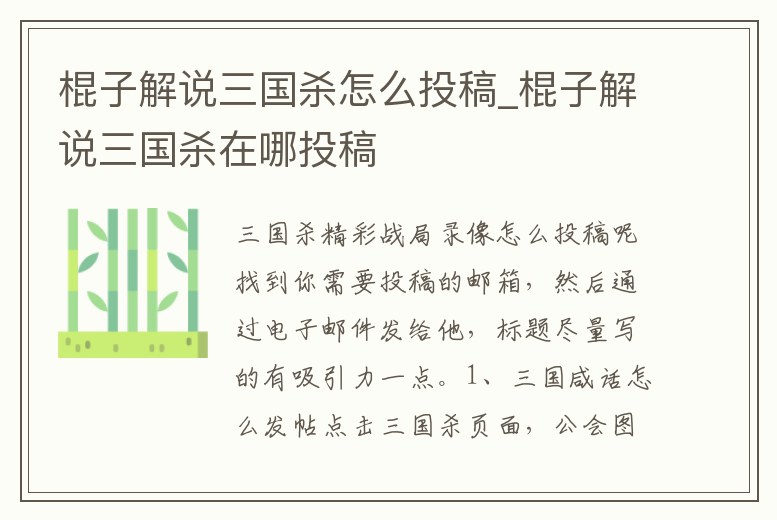 棍子解說三國殺怎么投稿_棍子解說三國殺在哪投稿