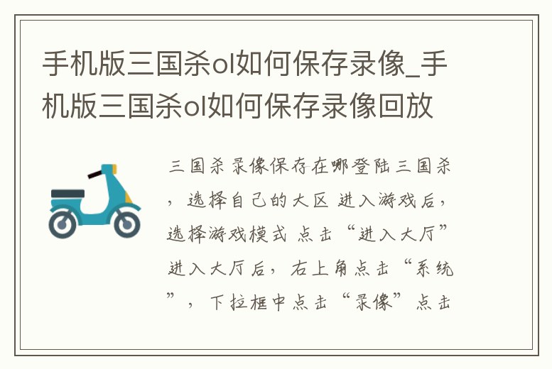 手機版三國殺ol如何保存錄像_手機版三國殺ol如何保存錄像回放