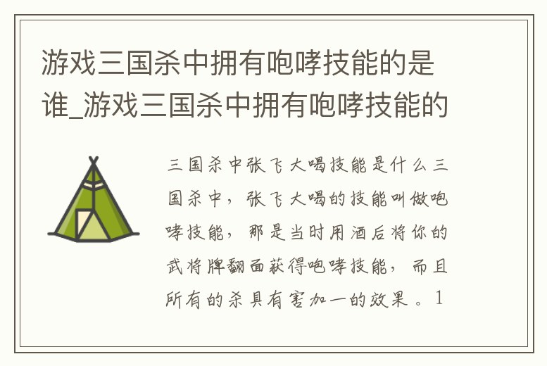 游戲三國殺中擁有咆哮技能的是誰_游戲三國殺中擁有咆哮技能的是誰武將