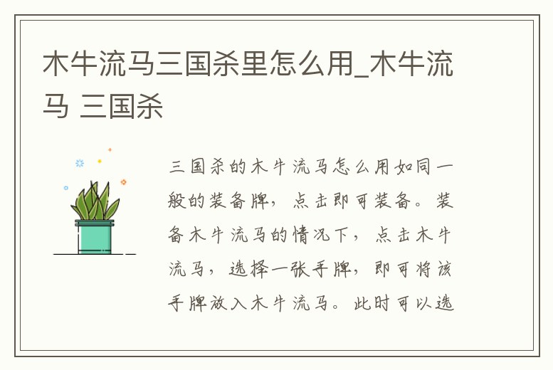 木牛流馬三國殺里怎么用_木牛流馬 三國殺