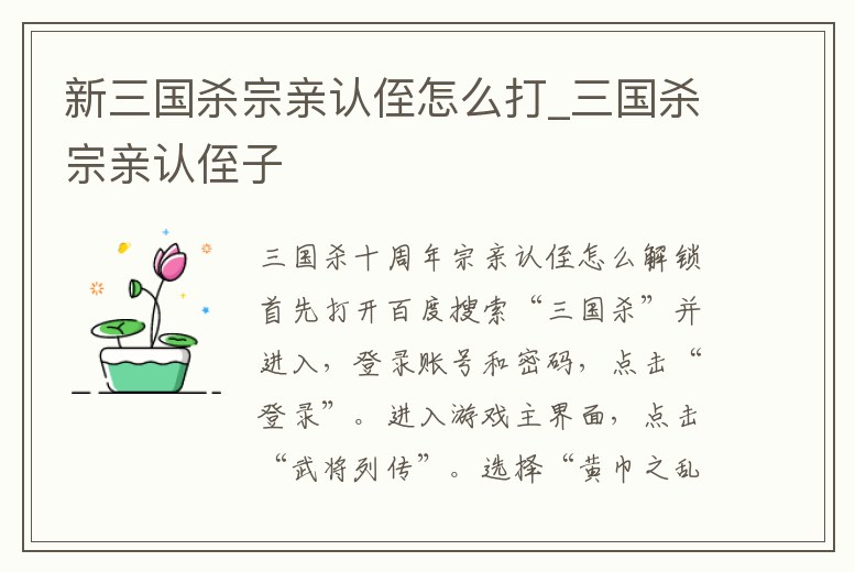 新三國殺宗親認侄怎么打_三國殺宗親認侄子
