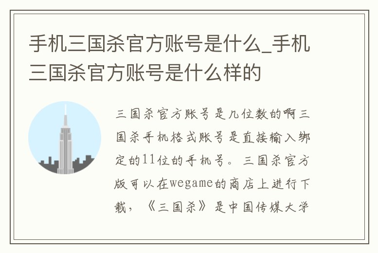 - 手機(jī)三國(guó)殺官方賬號(hào)是什么_手機(jī)三國(guó)殺官方賬號(hào)是什么樣的