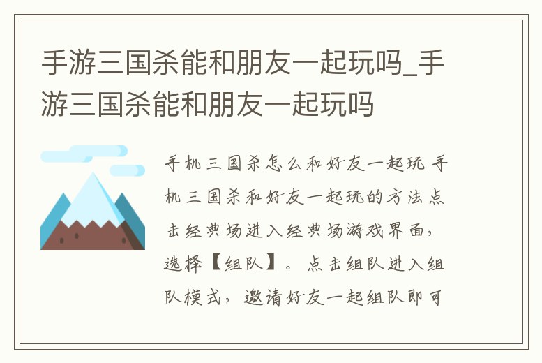 - 手游三國(guó)殺能和朋友一起玩嗎_手游三國(guó)殺能和朋友一起玩嗎