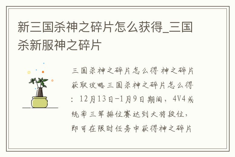 - 新三國(guó)殺神之碎片怎么獲得_三國(guó)殺新服神之碎片