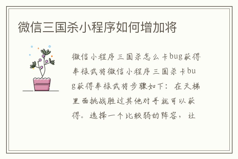 微信小程序三國殺怎么卡bug獲得奉祿武將