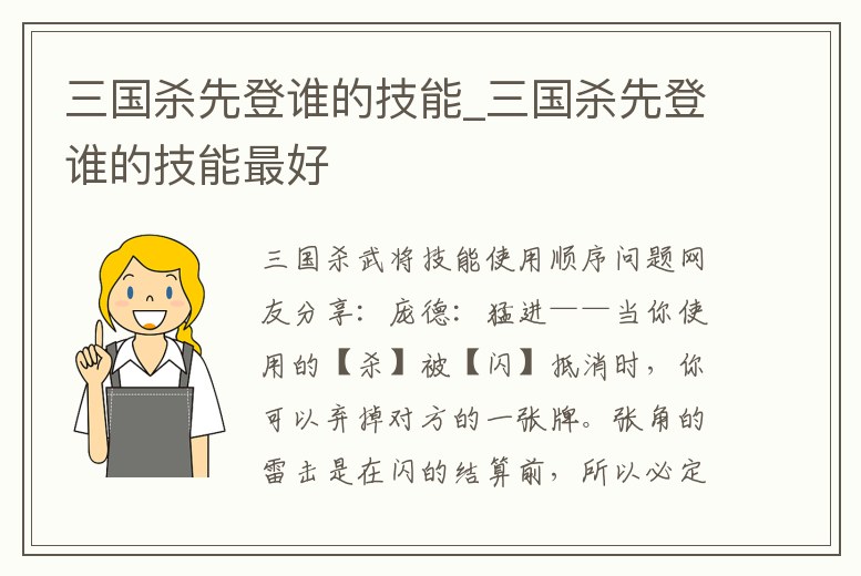 三國殺先登誰的技能_三國殺先登誰的技能最好