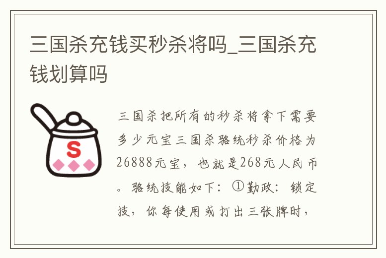 三國殺充錢買秒殺將嗎_三國殺充錢劃算嗎