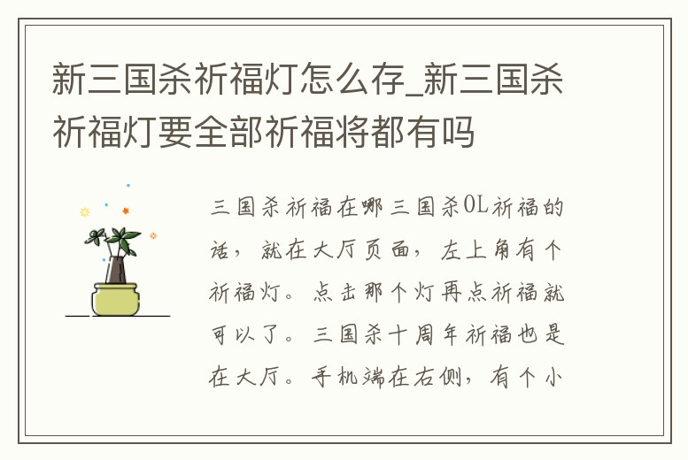 新三國殺祈福燈怎么存_新三國殺祈福燈要全部祈福將都有嗎