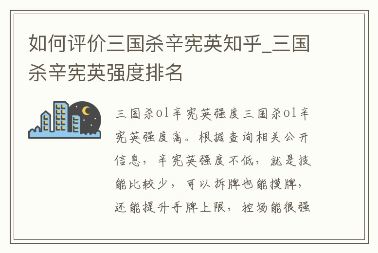 如何評價三國殺辛憲英知乎_三國殺辛憲英強度排名