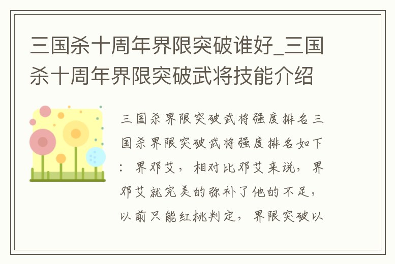 三國(guó)殺十周年界限突破誰好_三國(guó)殺十周年界限突破武將技能介紹