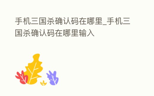 - 手機(jī)三國(guó)殺確認(rèn)碼在哪里_手機(jī)三國(guó)殺確認(rèn)碼在哪里輸入
