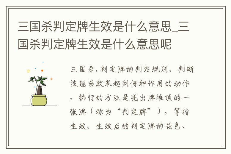 三國殺判定牌生效是什么意思_三國殺判定牌生效是什么意思呢