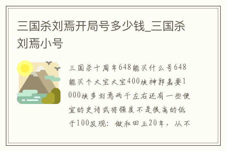 三國殺劉焉開局號多少錢_三國殺劉焉小號